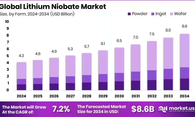 Lithium Niobate Market Encouraged Growth To USD 8.6 Billion by 2034 at 7.2% CAGR. AI-Generated.