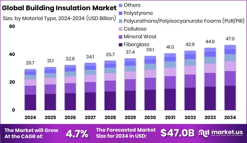 Building Insulation Market Report: USD 47.0 Billion by 2034 at 4.7% CAGR